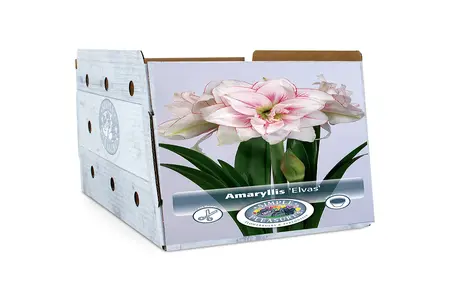 Secure your stock of these premium Double Elvas amaryllis bulbs for the upcoming holiday season. Available in convenient retail bulk packaging of 10 bulbs, complete with small picture tags for easy customer identification. These professionally cooled, ready-to-grow bulbs arrive primed for successful blooming. The eco-friendly, 100% recyclable packaging creates an attractive display option for your garden center or retail space. Order today to ensure availability for your discerning customers.