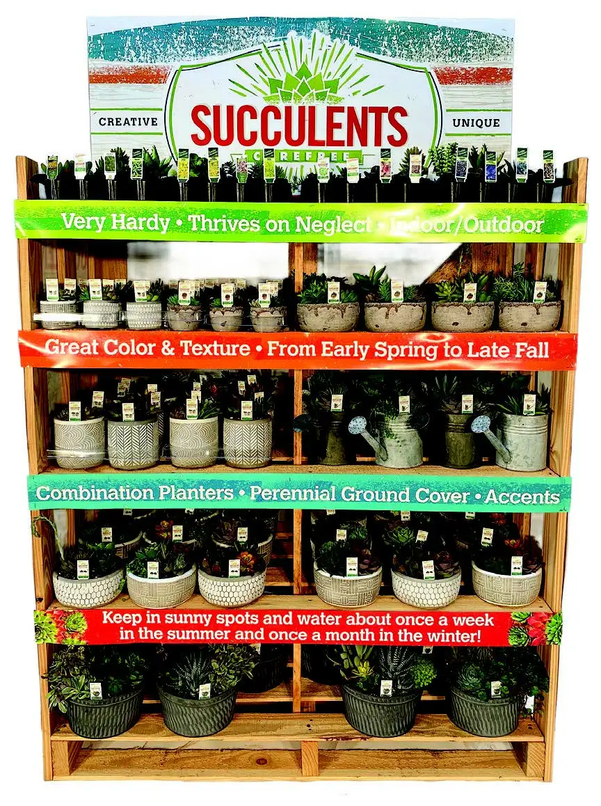 The Display Classic Neutrals collection ships year-round, weather permitting, allowing you to maintain consistent inventory regardless of season. Succulents thrive in bright indirect light and require minimal watering, making them ideal for indoor environments throughout all seasons. The durable containers included in this collection are designed for long-lasting performance, ensuring customer satisfaction with their purchase. This display provides the perfect solution for retailers seeking to capitalize on the enduring popularity of low-maintenance houseplants.