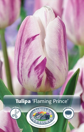 Tulipa 'Flaming Prince' is a captivating Single Early Tulip that transforms spring landscapes with its striking bicolor display. Featuring elegant white petals adorned with soft purple flames, this 2008 introduction quickly became a favorite among landscape professionals and garden enthusiasts. Standing 1216 inches tall, these sturdystemmed beauties offer reliable earlyseason color that withstands spring winds while creating dramatic visual impact.